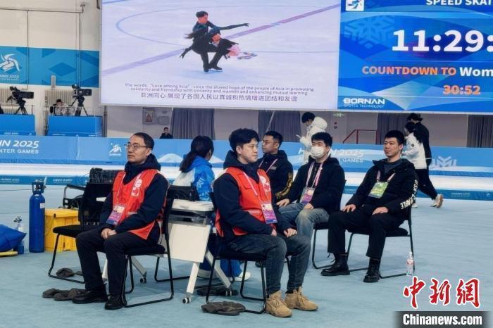 速滑馆医疗团队医生严密观察赛场情况。哈医大一院供图